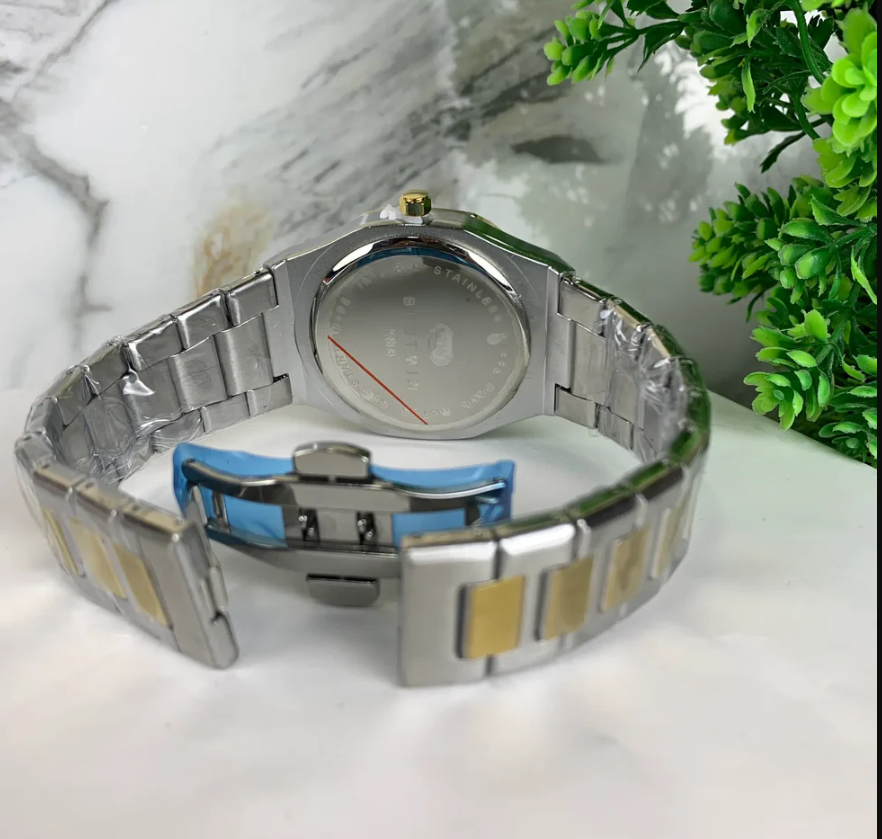 - Design & Materials: This timepiece features a robust stainless steel case and a distinctive two-tone bracelet, combining silver and gold elements for a sophisticated and versatile look.