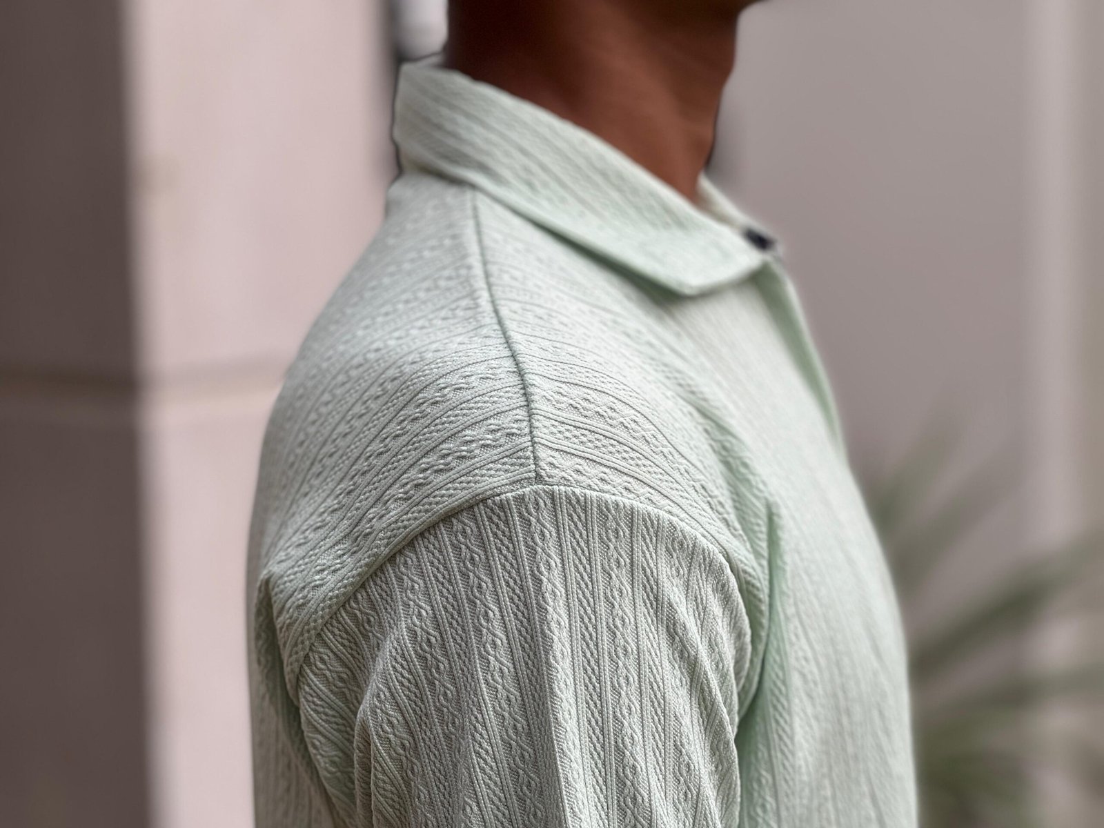 • Fabric & Texture: It features a noticeable textured knit pattern, which adds depth and visual interest to the fabric, likely made from cotton or a blend for comfort and breathability.