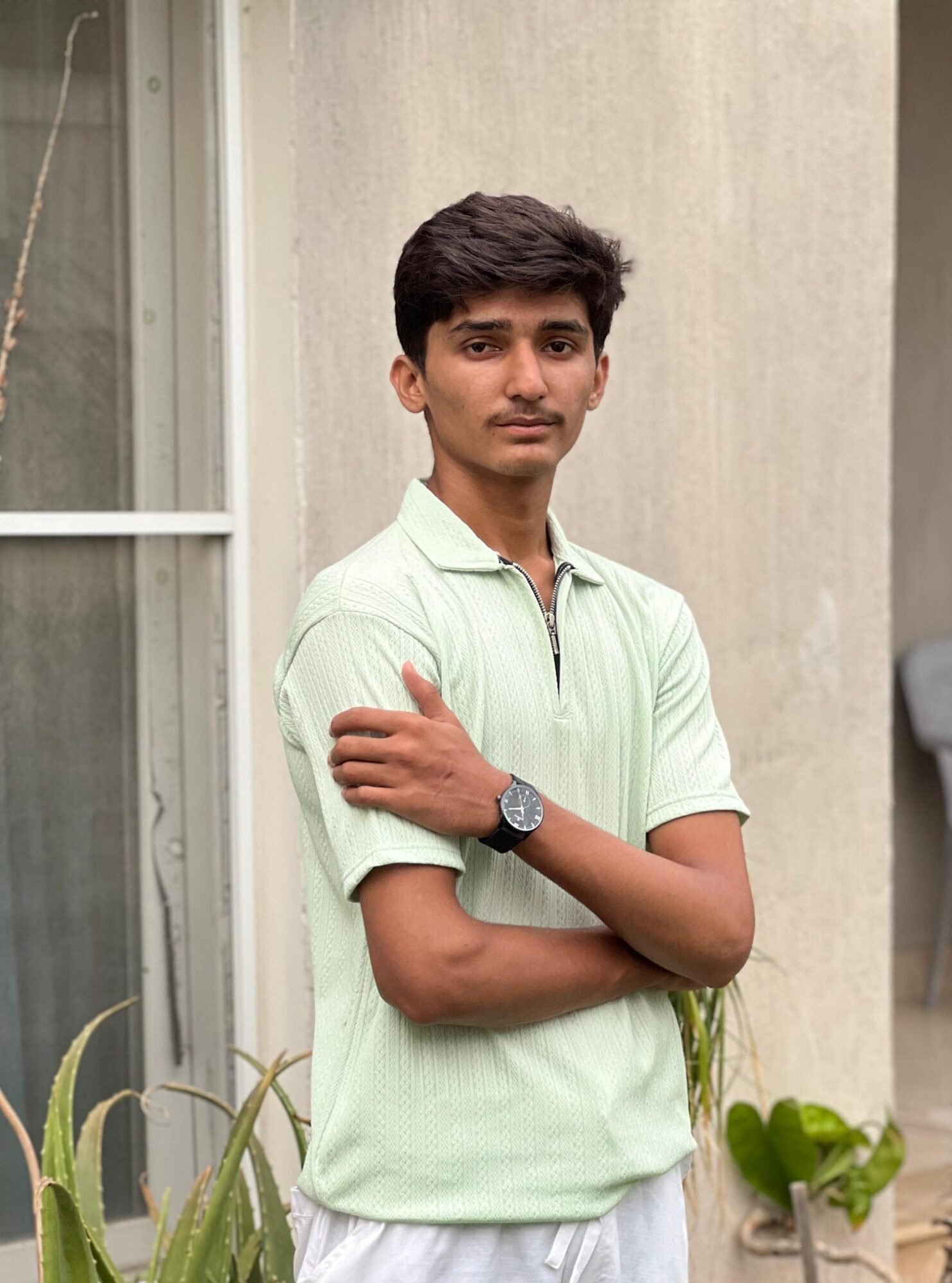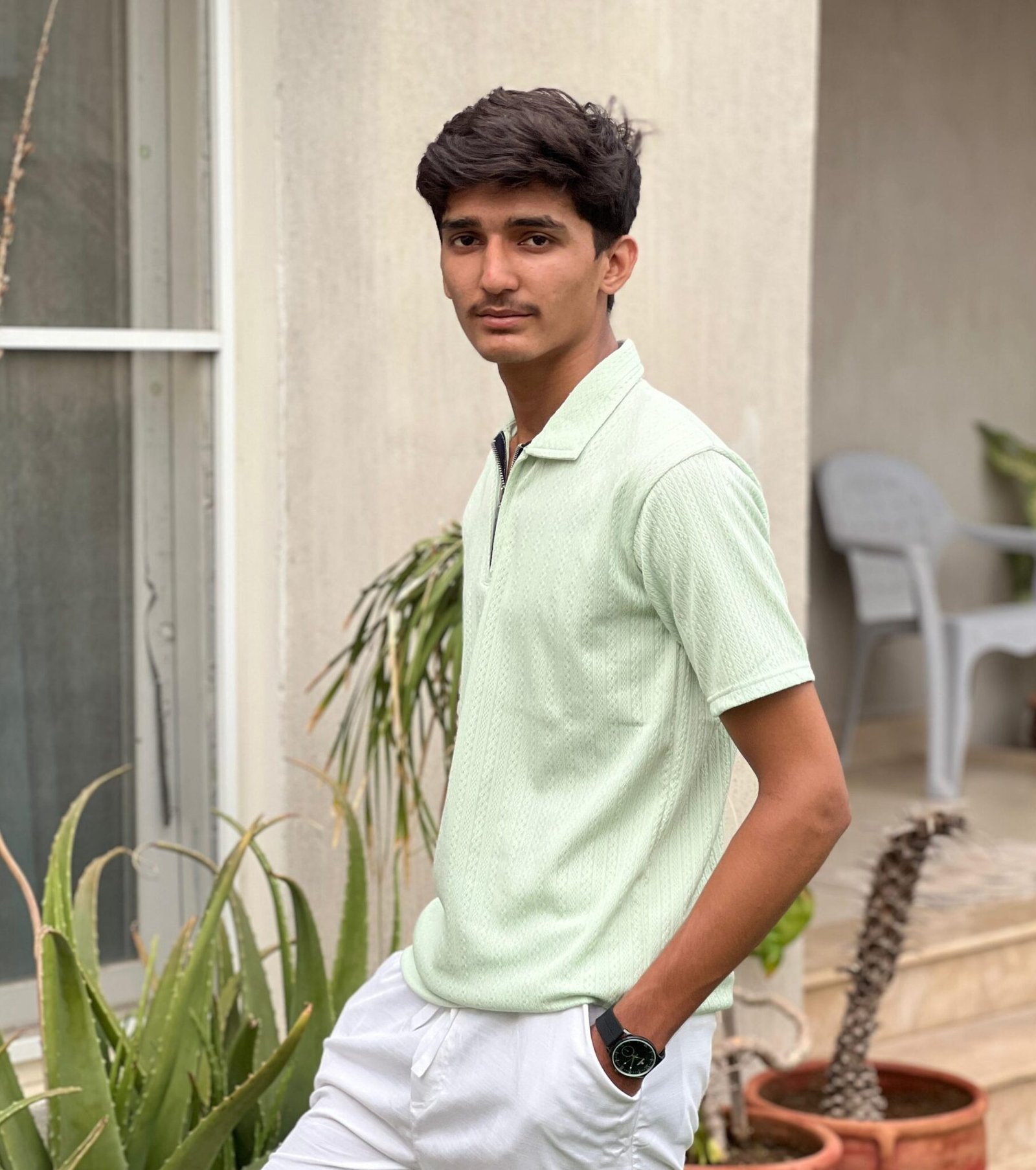 light green, short-sleeved polo shirt